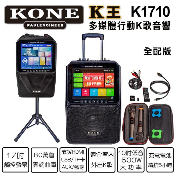 優寶購物《ubao.Tw》特貨品商城,黑貓宅配,取貨付款,KONE K王 K1710多媒體行動K歌音響/大螢幕17吋觸控點歌/10吋中低喇叭音效/拉桿式KTV音響 (豪華全配版) | Yahoo拍賣