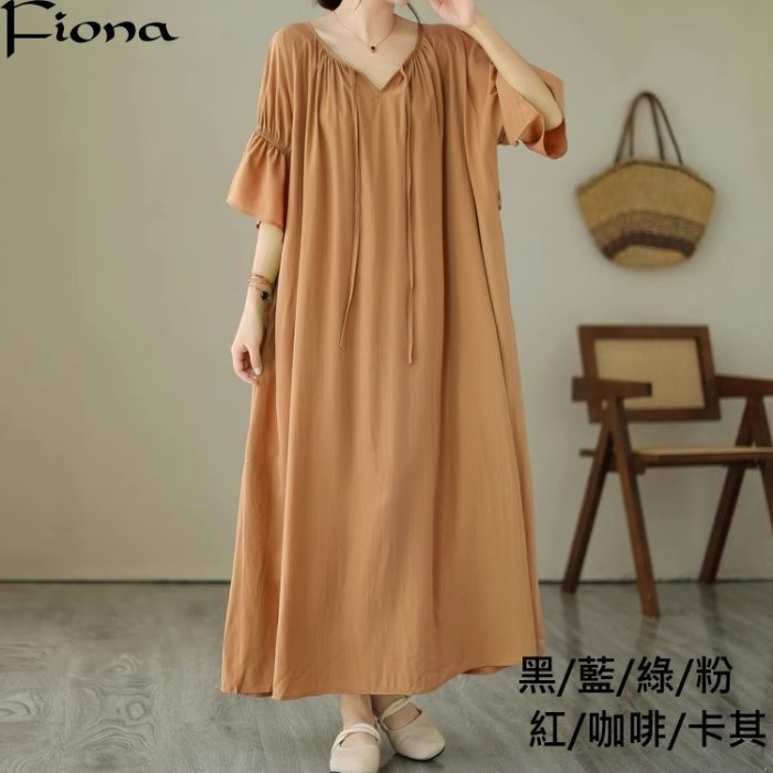 優寶購物《ubao.Tw》特貨品商城,黑貓宅配,取貨付款,✨免運費✨平價美衣※前後兩穿 繫帶領 喇叭袖 長裙 洋裝 寬鬆連身裙【費歐娜 】M230606 | Yahoo拍賣