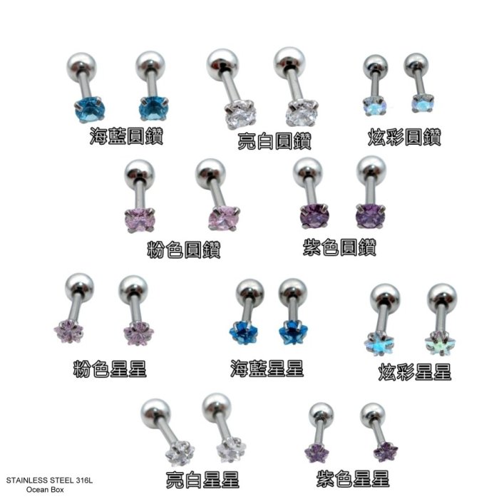 優寶購物《ubao.Tw》特貨品商城,黑貓宅配,取貨付款,☆§海洋盒子§☆多彩圓鑽.星星鑽螺旋針式白鋼耳環.需擴耳 KA011 (O)《抗過敏.不退色.可碰水》 | Yahoo拍賣
