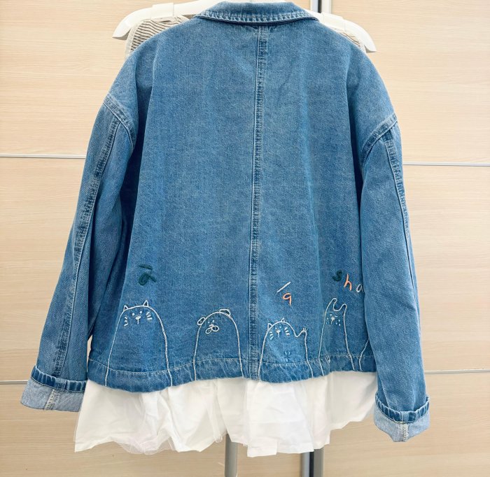 優寶購物《ubao.Tw》特貨品商城,黑貓宅配,取貨付款,流行百搭單品必買💖斷貨全新 a la sha 淺藍色S號後繡花Q咪造型網紗拼接牛仔外套 有型值得推薦😍 | Yahoo拍賣