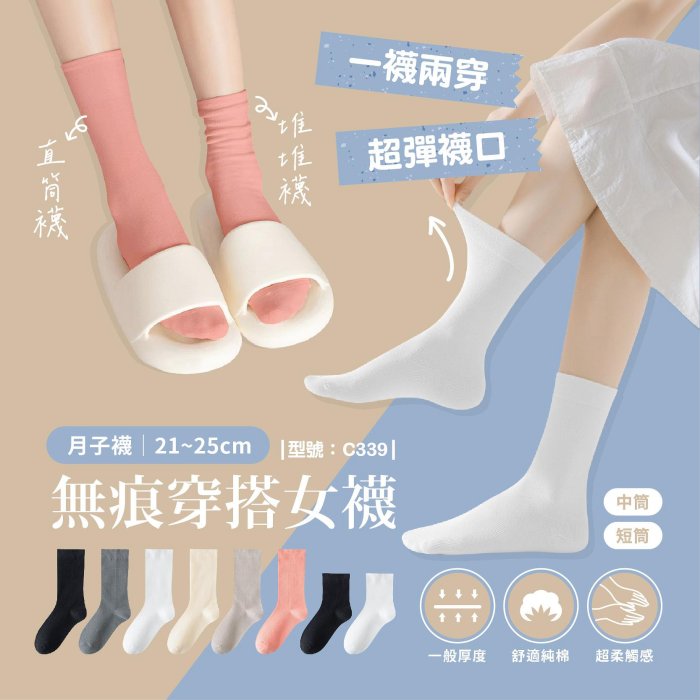 優寶購物《ubao.Tw》特貨品商城,黑貓宅配,取貨付款,滿299免運/台灣現貨/無痕穿搭女襪【1雙】襪子/棉襪/黑襪/白襪/堆堆襪/韓系襪/中筒【FAV】【C339】 | Yahoo拍賣