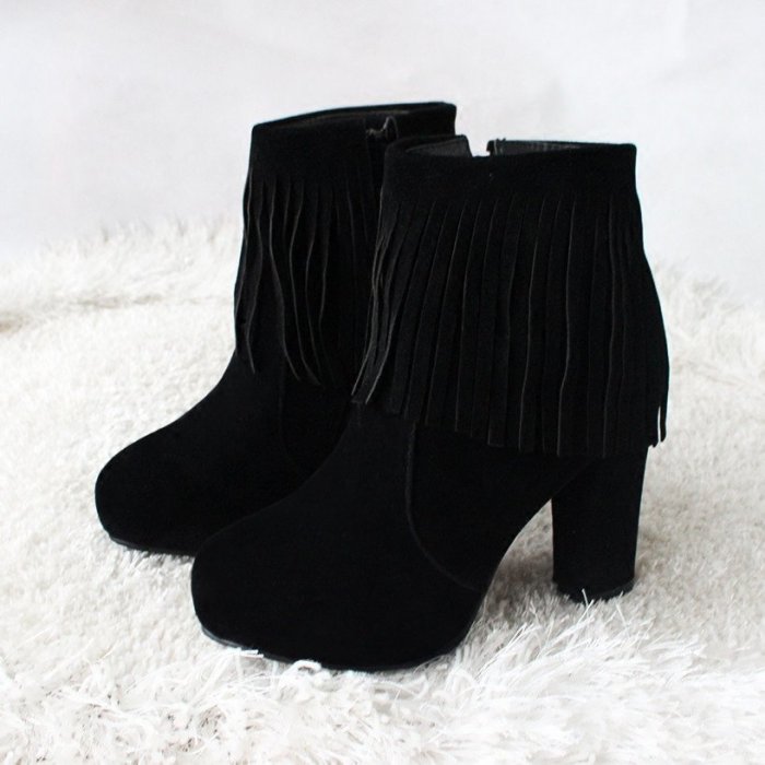 優寶購物《ubao.Tw》特貨品商城,黑貓宅配,取貨付款,33-43大尺碼正韓版絨面圓頭側拉鏈粗跟超高跟短靴流蘇靴子 歐美百搭40馬丁靴41小尺碼42女鞋34-雙喜生活館 | Yahoo拍賣