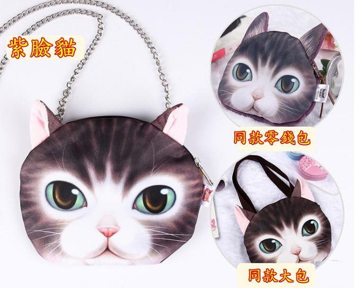 優寶購物《ubao.Tw》特貨品商城,黑貓宅配,取貨付款,女包3D喵星人單肩包斜挎包零錢包萌貓動物包包(紫臉貓)(鍊條包+零錢包) | Yahoo拍賣