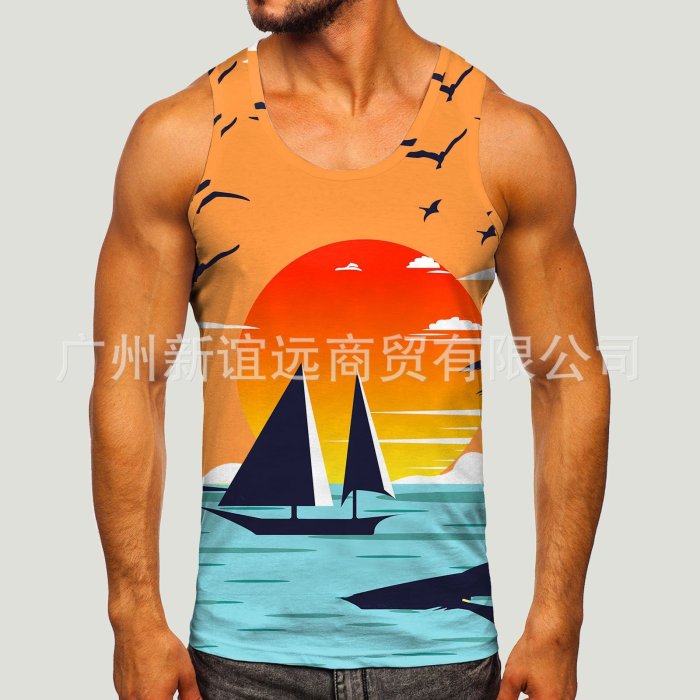 優寶購物《ubao.Tw》特貨品商城,黑貓宅配,取貨付款,下殺-夏季背心 男士背心2023男士春夏數碼印花背心沙灘背心T恤休閑上衣 | Yahoo拍賣