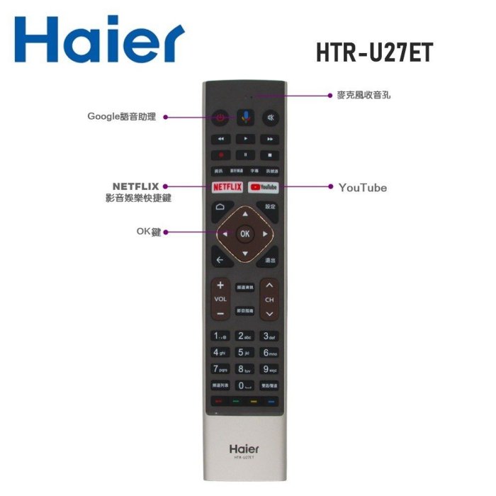 優寶購物《ubao.Tw》特貨品商城,黑貓宅配,取貨付款,【Haier海爾】語音聲控遙控器HTR-U27E / HTR-U27ET HTR-U29G全系列海爾安卓聯網連網液晶電視 | Yahoo拍賣