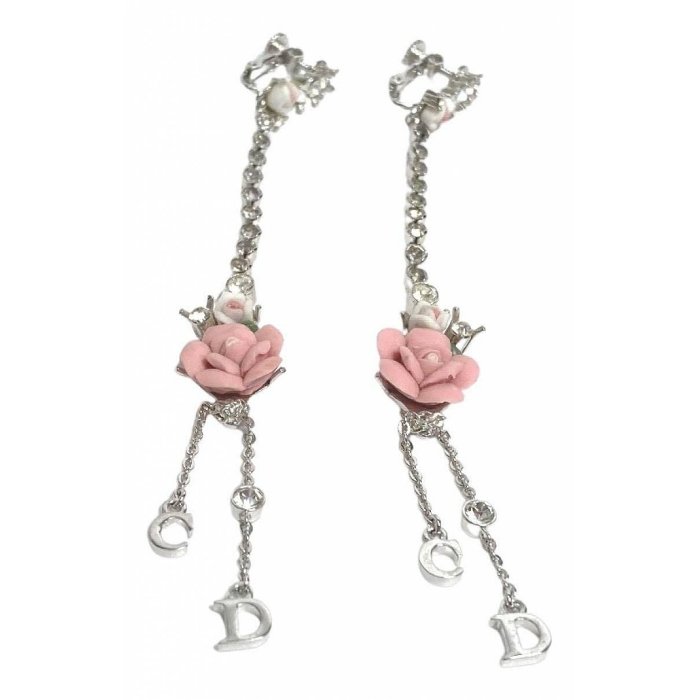 優寶購物《ubao.Tw》特貨品商城,黑貓宅配,取貨付款,Christian Dior vintage克里斯汀·迪奧復古甜美白玫瑰+粉玫瑰垂墜銀色CD字母標誌古董夾式耳環 | Yahoo拍賣