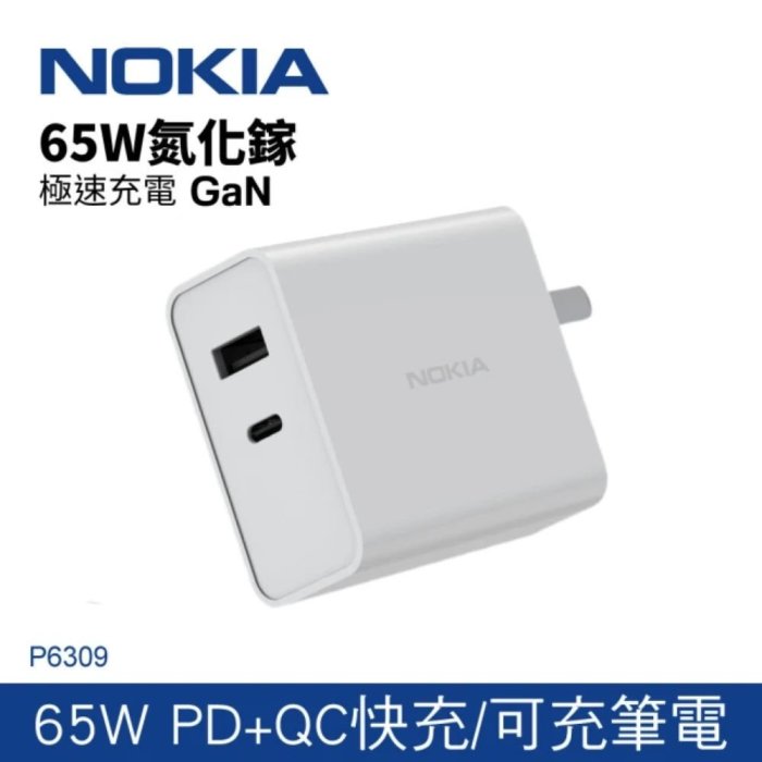 優寶購物《ubao.Tw》特貨品商城,黑貓宅配,取貨付款,NOKIA GaN 氮化鎵 PD+QC 65W電源供應器 P6309 | Yahoo拍賣