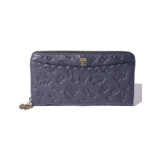 優寶購物《ubao.Tw》特貨品商城,黑貓宅配,取貨付款,【限時代購】全新日本專櫃ANNA SUI高雅滿版復古蝴蝶壓紋立體LOGOㄇ型精緻蝴蝶拉鍊牛革長皮夾(黑/藍色) | Yahoo拍賣