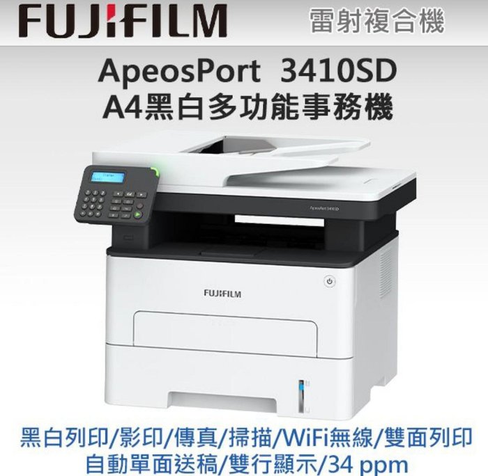 優寶購物《ubao.Tw》特貨品商城,黑貓宅配,取貨付款,送咖啡 FUJIFILM ApeosPort 3410SD A4黑白雷射多功能事務傳真複合機 非 連供 噴墨 epson canon hp | Yahoo拍賣