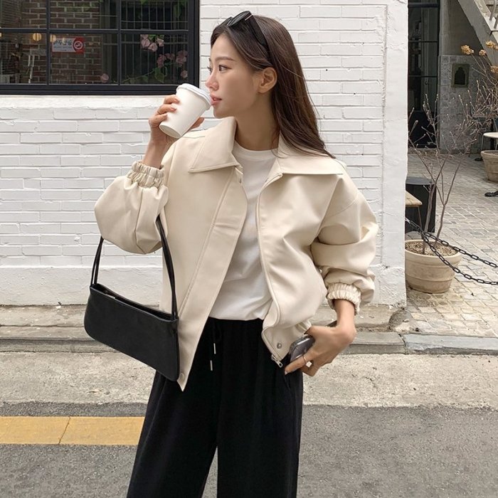 優寶購物《ubao.Tw》特貨品商城,黑貓宅配,取貨付款,Bellee 正韓 個性女孩 腰鬆緊拉鍊壓扣皮革外套 (2色) 【0927-18】 | Yahoo拍賣