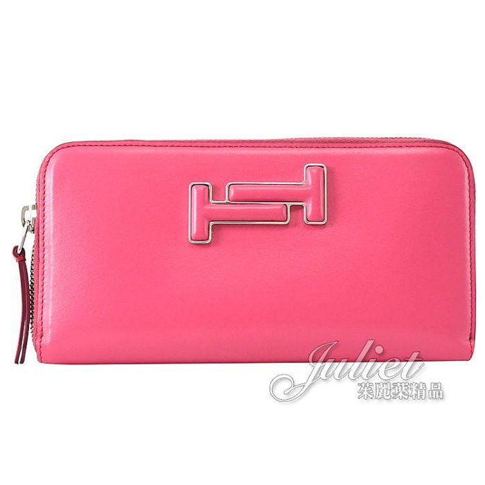 優寶購物《ubao.Tw》特貨品商城,黑貓宅配,取貨付款,【茱麗葉精品】【全新商品】TODS 專櫃商品 DOUBLE T LOGO小牛皮拉鍊長夾.桃紅 現貨 | Yahoo拍賣