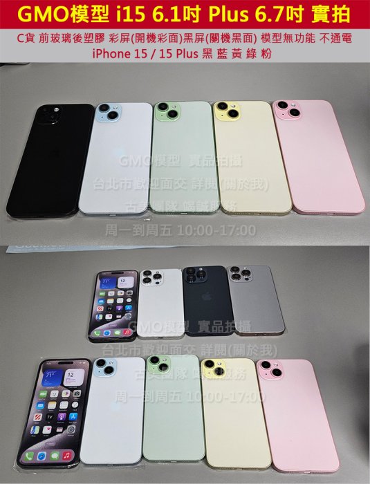 優寶購物《ubao.Tw》特貨品商城,黑貓宅配,取貨付款,GMO模型 C貨前玻璃後塑膠 iPhone 15 15 Plus Dummy樣品包膜道具交差拍片拍戲假機 | Yahoo拍賣