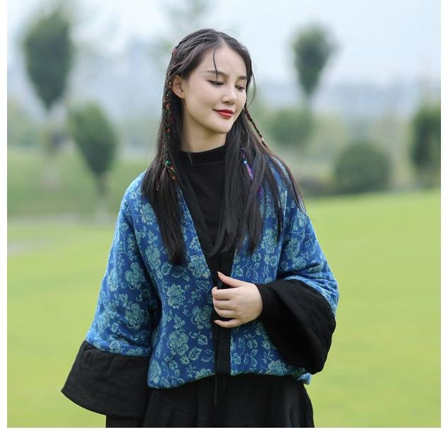 優寶購物《ubao.Tw》特貨品商城,黑貓宅配,取貨付款,(老銀屋) 冬裝中式青花素雅喇叭袖保暖繫帶夾棉外套 QW231023 | Yahoo拍賣