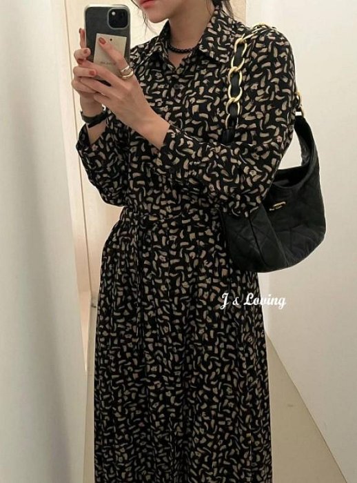 優寶購物《ubao.Tw》特貨品商城,黑貓宅配,取貨付款,J&L 10月 正韓 雪紡 襯衫式 長洋裝 綁帶 點點 豹紋 不規則印花 排扣 米/藍/黑 預購 | Yahoo拍賣