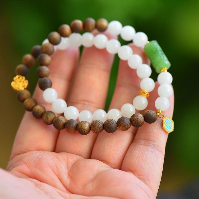 優寶購物《ubao.Tw》特貨品商城,黑貓宅配,取貨付款,天然沈香珠/沉香珠 和田白玉碧玉回纹桶珠設計多圈手串手持 | Yahoo拍賣