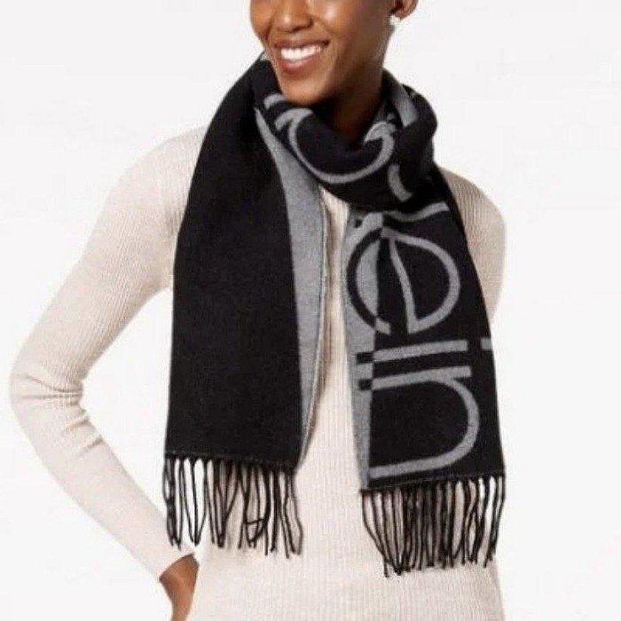 優寶購物《ubao.Tw》特貨品商城,黑貓宅配,取貨付款,全新Calvin Klein雙色(灰+黑)LOGO圍巾 | Yahoo拍賣