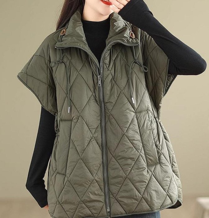 優寶購物《ubao.Tw》特貨品商城,黑貓宅配,取貨付款,女人衣櫥㊕秋冬裝都會淑女設計款翻立領輕鬆搭 綠色/米色菱格車線 垮肩小袖側口袋臀長拉鍊鋪棉防風保暖背心 大尺碼超大胸124-136.M722♥ | Yahoo拍賣