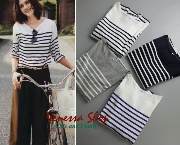 優寶購物《ubao.Tw》特貨品商城,黑貓宅配,取貨付款,小V特賣館~ 日單 MU 百搭實穿 休閒通勤高CP值 經典條紋 女の一字領純棉長袖T恤上衣 五色 (L534) | Yahoo拍賣