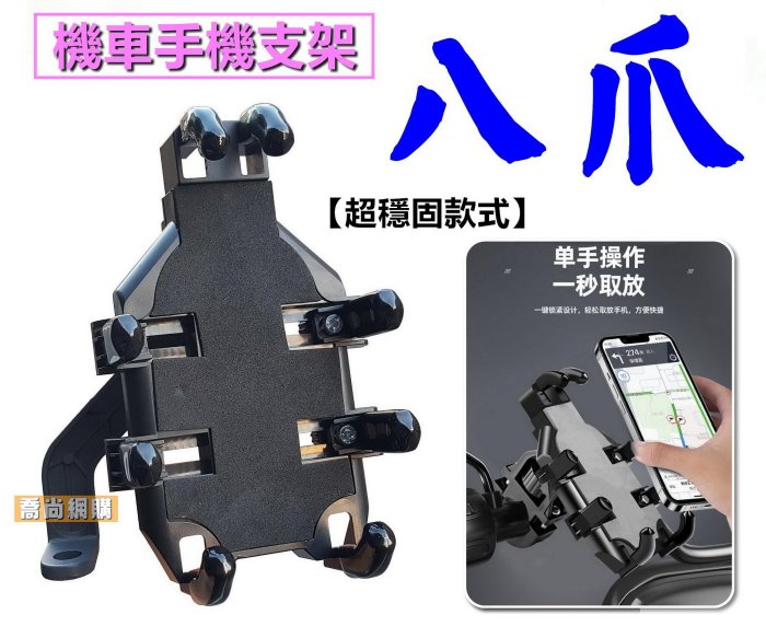 優寶購物《ubao.Tw》特貨品商城,黑貓宅配,取貨付款,【喬尚】機車手機支架【八爪】車把款&後視鏡款 | Yahoo拍賣