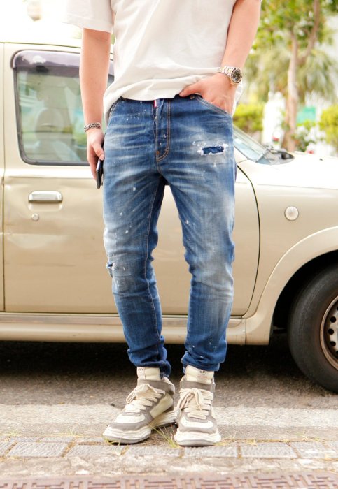 優寶購物《ubao.Tw》特貨品商城,黑貓宅配,取貨付款,DSQUARED2 23FW D2 RELAX LONG CROTCH 袋花 刺繡 馬毛標 錐形 牛仔長褲 | Yahoo拍賣