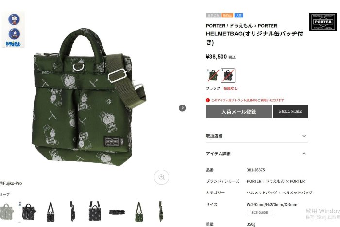 優寶購物《ubao.Tw》特貨品商城,黑貓宅配,取貨付款,日本版PORTER X 哆啦A夢 小叮噹 ドラえもん × PORTER HELMETBAG 381-26875綠色 | Yahoo拍賣