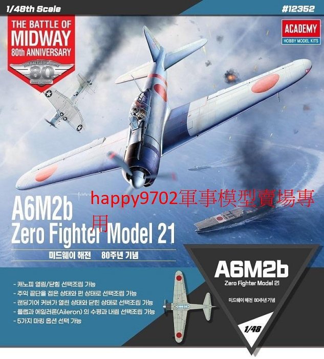 優寶購物《ubao.Tw》特貨品商城,黑貓宅配,取貨付款,現貨 ACADEMY 1/48 日本 A6M2b 零式戰鬥機 21型 中途島海戰 12352 | Yahoo拍賣