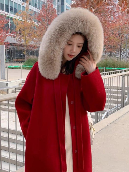 優寶購物《ubao.Tw》特貨品商城,黑貓宅配,取貨付款,全羊毛🦙100% 真狐狸毛領 超美的😍😍雙面羊毛大衣 | Yahoo拍賣