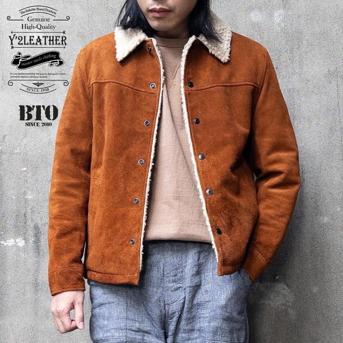 優寶購物《ubao.Tw》特貨品商城,黑貓宅配,取貨付款,[BTO]日本【Y'2 Leather】閹牛麂皮羔羊美式復古翻領牧場外套 | Yahoo拍賣