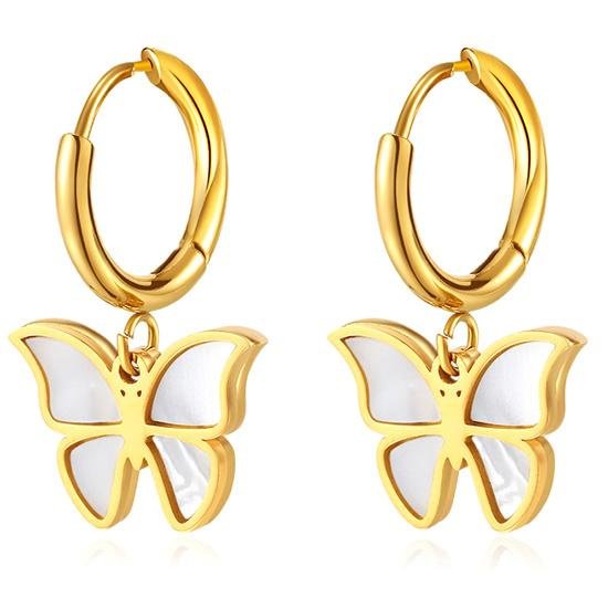 優寶購物《ubao.Tw》特貨品商城,黑貓宅配,取貨付款,《 QBOX 》FASHION 飾品【OGE836】精緻氣質蝴蝶貝殼金色鈦鋼圈扣式耳環/耳飾 | Yahoo拍賣