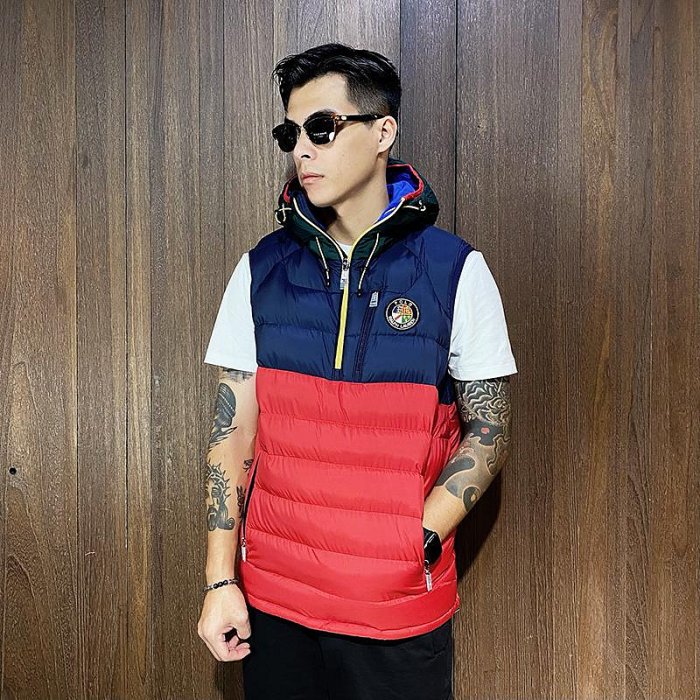 優寶購物《ubao.Tw》特貨品商城,黑貓宅配,取貨付款,美國百分百【全新真品】Ralph Lauren 羽絨背心 連帽 RL POLO 背心外套 拼色 深藍 CR57 | Yahoo拍賣