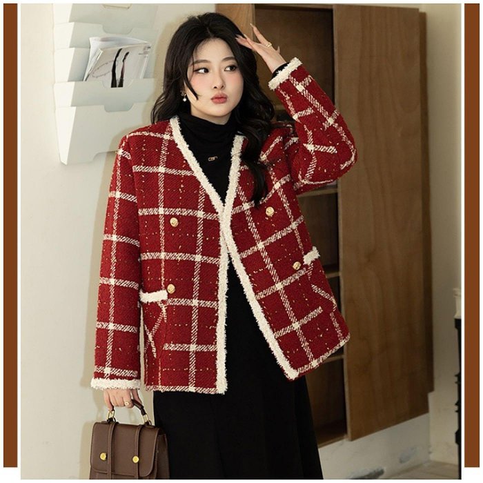 優寶購物《ubao.Tw》特貨品商城,黑貓宅配,取貨付款,大尺碼外套撞色格紋小香風毛呢西裝外套2色可選💕小言家 | Yahoo拍賣