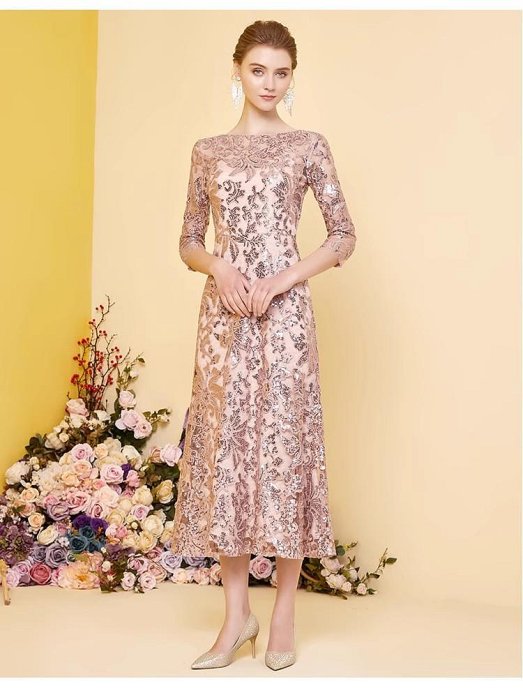 優寶購物《ubao.Tw》特貨品商城,黑貓宅配,取貨付款,妞妞 婚紗禮服~M-3XL-婆婆媽媽主婚人專櫃一字肩亮片修身顯瘦洋裝連身裙禮服~3件免郵 | Yahoo拍賣