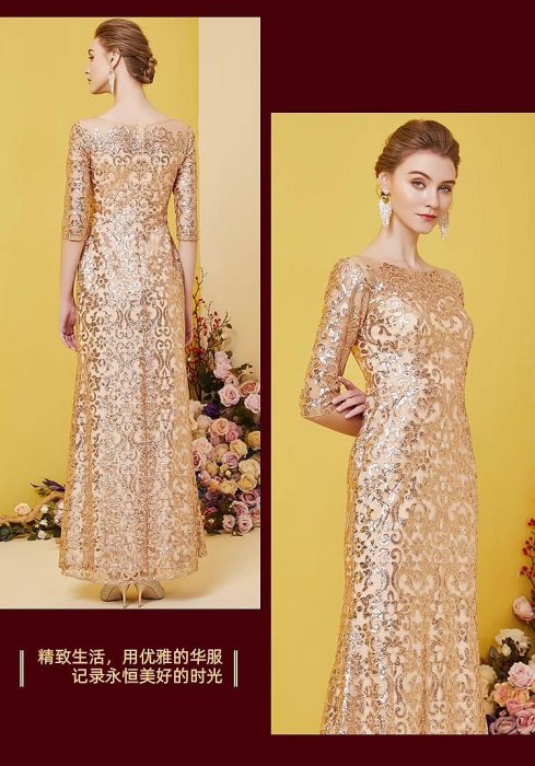 優寶購物《ubao.Tw》特貨品商城,黑貓宅配,取貨付款,妞妞 婚紗禮M-3XL-專櫃婆婆媽媽金色亮片主婚人修身顯瘦優雅長禮服~3件免郵 | Yahoo拍賣