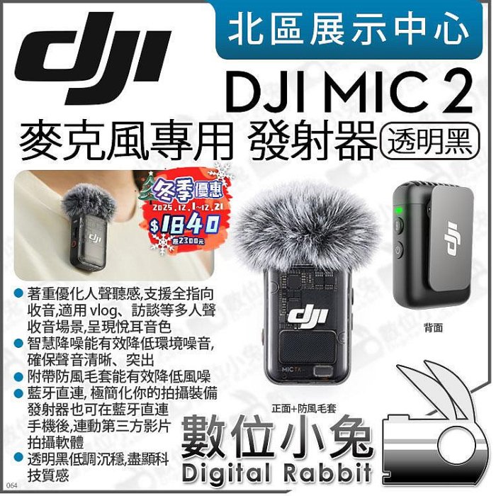 優寶購物《ubao.Tw》特貨品商城,黑貓宅配,取貨付款,數位小兔【 DJI MIC 2 無線麥克風專用 單發射器 透明黑 冬季優惠 至114/12/21】TX 發射器 無線麥 全指向 公司貨 | Yahoo拍賣