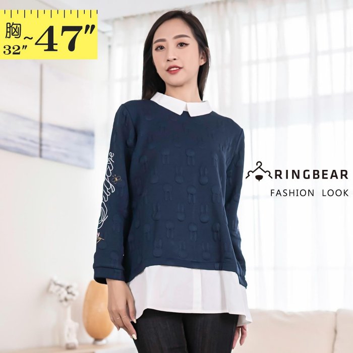 優寶購物《ubao.Tw》特貨品商城,黑貓宅配,取貨付款,假二件--可愛立體兔子壓紋假兩件襯衫翻領長袖上衣(藍XL-3L)-X544眼圈熊中大尺碼 | Yahoo拍賣