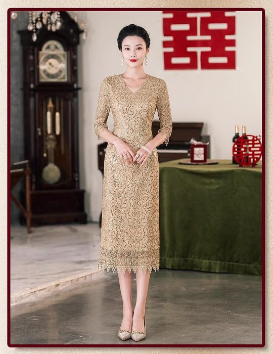優寶購物《ubao.Tw》特貨品商城,黑貓宅配,取貨付款,妞妞 婚紗禮服~M-3XL-婆婆媽媽主婚人專櫃香檳金亮片修身顯瘦洋裝連身裙禮服~3件免郵 | Yahoo拍賣