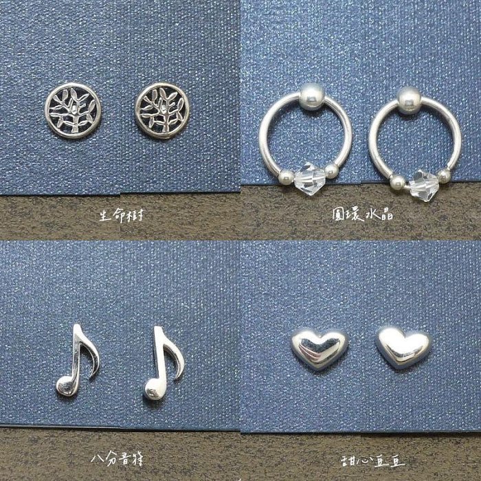 優寶購物《ubao.Tw》特貨品商城,黑貓宅配,取貨付款,音符、甜心豆豆、圓環水晶、生命樹。純銀耳環(耳針式)(E8808)【La luna銀飾豐華】 | Yahoo拍賣