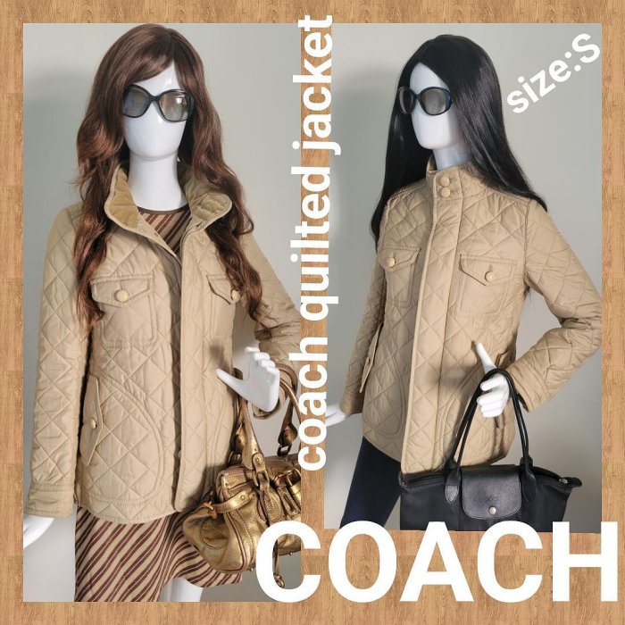 優寶購物《ubao.Tw》特貨品商城,黑貓宅配,取貨付款,美國品牌COACH米色舖棉菱格紋質感經典款外套,美國尺寸:S號(亞洲S~小L) | Yahoo拍賣