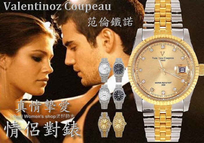 優寶購物《ubao.Tw》特貨品商城,黑貓宅配,取貨付款,法國巴黎 Valentino Coupeau 范倫鐵諾 真情摯愛 鑽面刻度 情人對錶 男女腕錶 男錶 女錶 | Yahoo拍賣