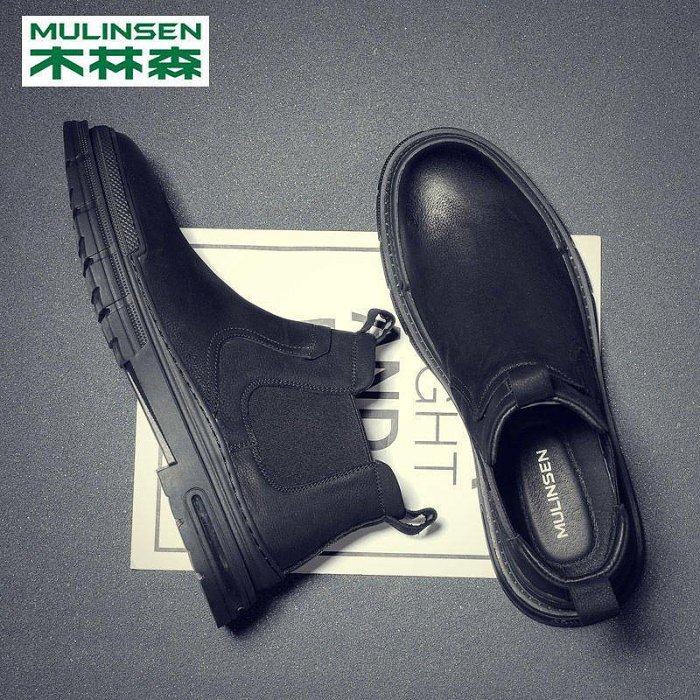 優寶購物《ubao.Tw》特貨品商城,黑貓宅配,取貨付款,【熱賣精選】木林森男鞋2021新款頭層牛皮男士休閑高幫鞋防滑軟底切爾西馬丁靴 | Yahoo拍賣