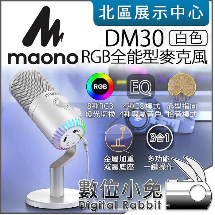 優寶購物《ubao.Tw》特貨品商城,黑貓宅配,取貨付款,數位小兔【 MAONO DM30 RGB 全能型麥克風 白色 】電競 麥克風 隨插即用 心型指向 桌面麥克風 直播 公司貨 | Yahoo拍賣