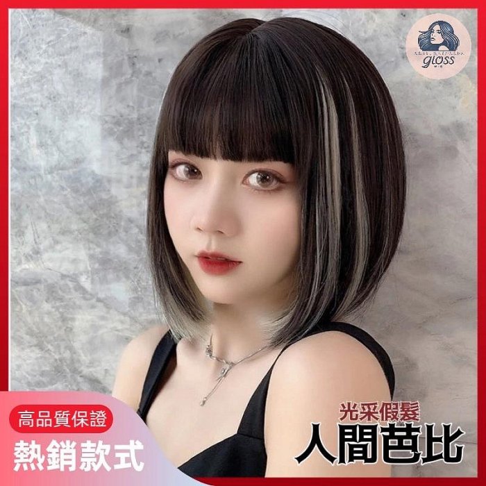 優寶購物《ubao.Tw》特貨品商城,黑貓宅配,取貨付款,【限時特惠】尾牙派對cosplay 人間芭比 假髮 女短髮Lisa同款 耳掛染假髮 網紅BOBO頭 內扣鎖骨髮 挑染假髮 | Yahoo拍賣