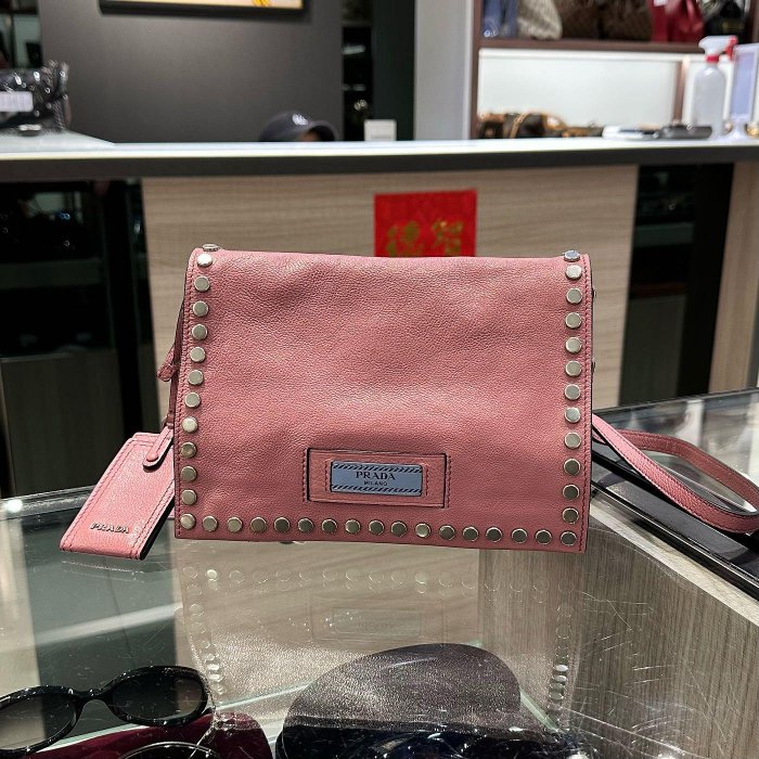 優寶購物《ubao.Tw》特貨品商城,黑貓宅配,取貨付款,⭐️ 香榭屋精品店 ⭐️ PRADA 1BD082粉紅色牛皮銀鉚釘掀蓋肩背包 斜背包 兩用包 (B5759) 未使用商品 | Yahoo拍賣