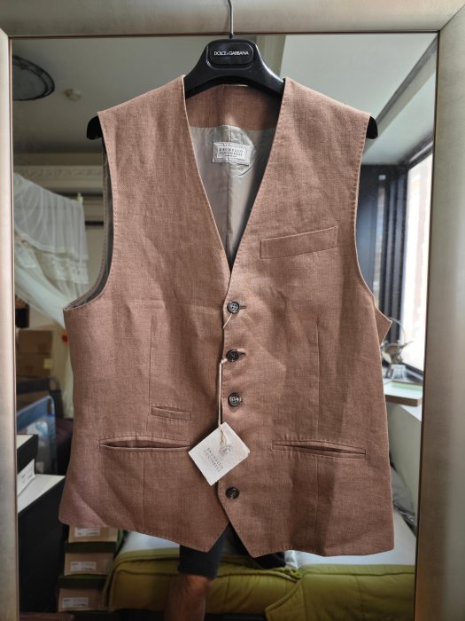 優寶購物《ubao.Tw》特貨品商城,黑貓宅配,取貨付款,BRUNELLO CUCINELLI全新真品義大利製亞麻材質淺咖啡色西裝背心(48號)-1.9折出清(不議價商品) | Yahoo拍賣