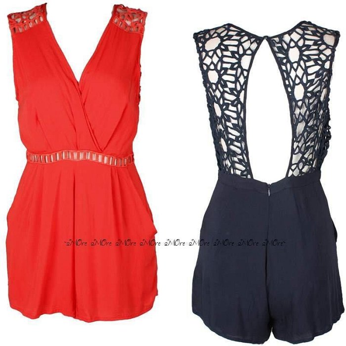 優寶購物《ubao.Tw》特貨品商城,黑貓宅配,取貨付款,§§§ aMOre §§§ 好萊塢最愛 SEXY針織幾何簍空拼接連身短褲裝~超值雙色 | Yahoo拍賣