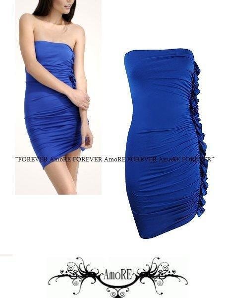 優寶購物《ubao.Tw》特貨品商城,黑貓宅配,取貨付款,§§§AmoRE§§§ 歐美設計 辣辣波浪單側細抓皺曲線合身鮮寶藍女人味洋裝 | Yahoo拍賣
