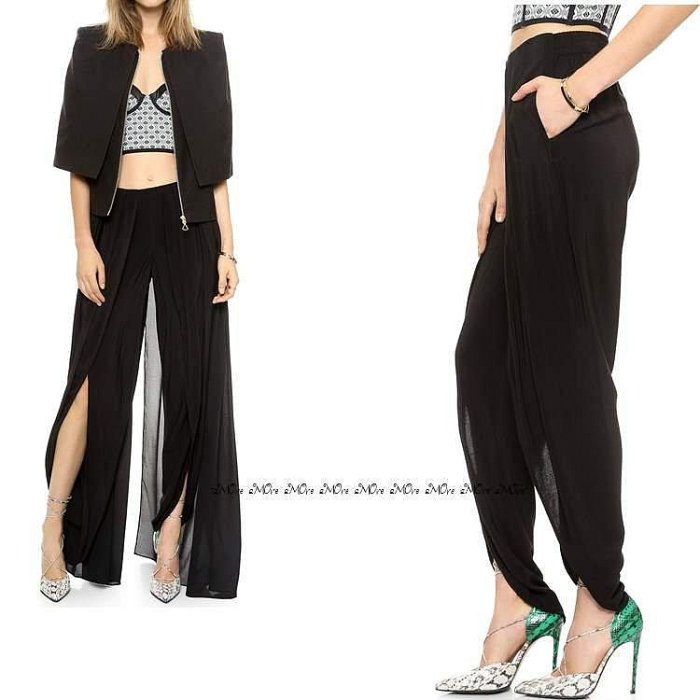 優寶購物《ubao.Tw》特貨品商城,黑貓宅配,取貨付款,§§§ aMOre §§§ 歐美設計 SEXY高衩個性造型浪漫雪紡細皺哈倫褲長褲 | Yahoo拍賣