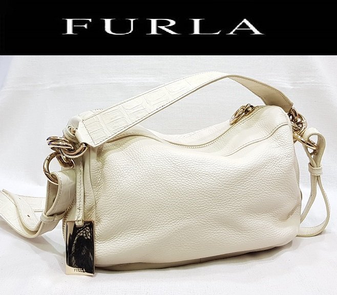 優寶購物《ubao.Tw》特貨品商城,黑貓宅配,取貨付款,羅浮宮 義大利 Furla 芙拉 新款 象牙白 編織紋 潘朵拉手提袋 有長背帶 肩背 側背 | Yahoo拍賣