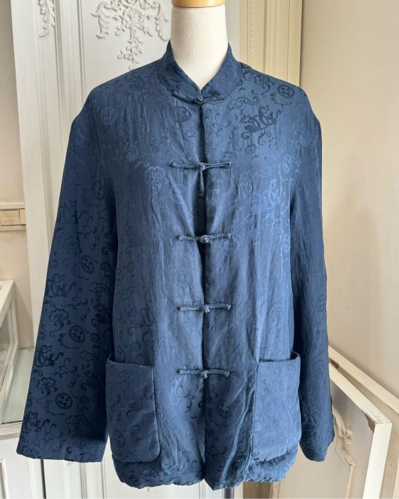 優寶購物《ubao.Tw》特貨品商城,黑貓宅配,取貨付款,正品夏姿深藍色絲緞織繡布料鋪棉外套46(L+號) | Yahoo拍賣