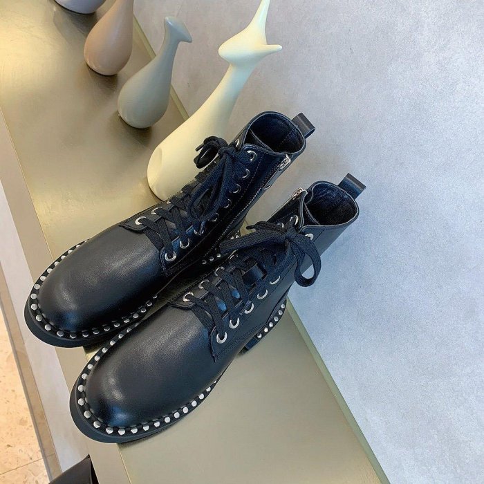 優寶購物《ubao.Tw》特貨品商城,黑貓宅配,取貨付款,現貨促銷特惠 AW大王 鉚釘鑲嵌系帶短靴 全真皮低跟馬丁靴明星同款 經典爆款 直出妖精 | Yahoo拍賣